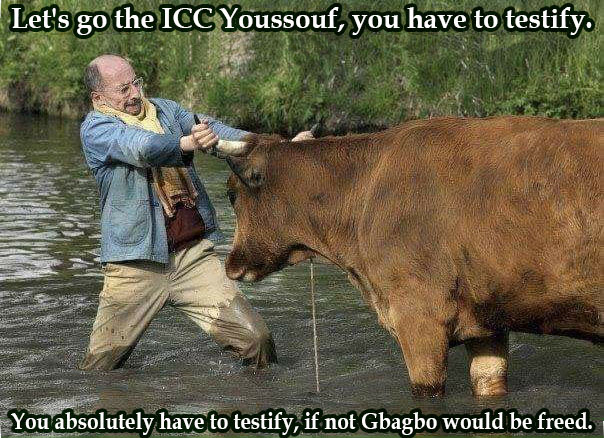 Konačno, niang bensudina žeđ da vidi izabranog naroda Obale Bjelokosti i dostojnog sina Afrike Laurent Gbagbo kao osuđenika može se zadovoljiti uz pomoć ovog genijalnog svjedoka koji, prema niang bensudi, Odin mora imati sve nepobitne dokaze da UN (ova kriminalna i rasistička organizacija.), nesretne nevladine organizacije koje žive od krvi koja slobodno teče Afrikom i drugi vampiri svih vrsta koji su tvrdili da su je čuvali tijekom francuskog puča u Obali Bjelokosti. Brojni dokazi koji se tiču navodnih ratnih zločina i zločina protiv čovječnosti predsjednika Laurent Gbagbo, njegove supruge Simone Gbagbo i njegovog ministra Blé Goudé koje su te zločinačke organizacije objavile da posjeduju, a koje nyang bensouda još uvijek nije mogao predočiti sudu , to je sigurno bik Youssouf, koji ih ima. A ako je to slučaj, Nyang Bensouda će napokon uživati u svom šampanjcu i dokazati svojim gospodarima da nije dobila dva milijuna dolara za ništa.